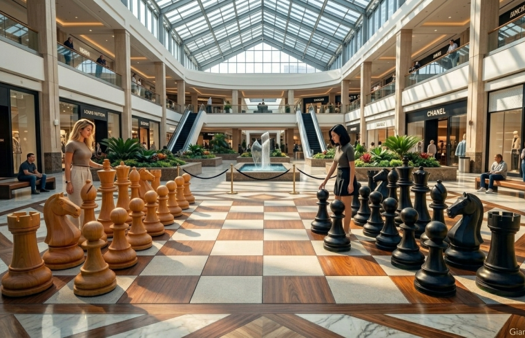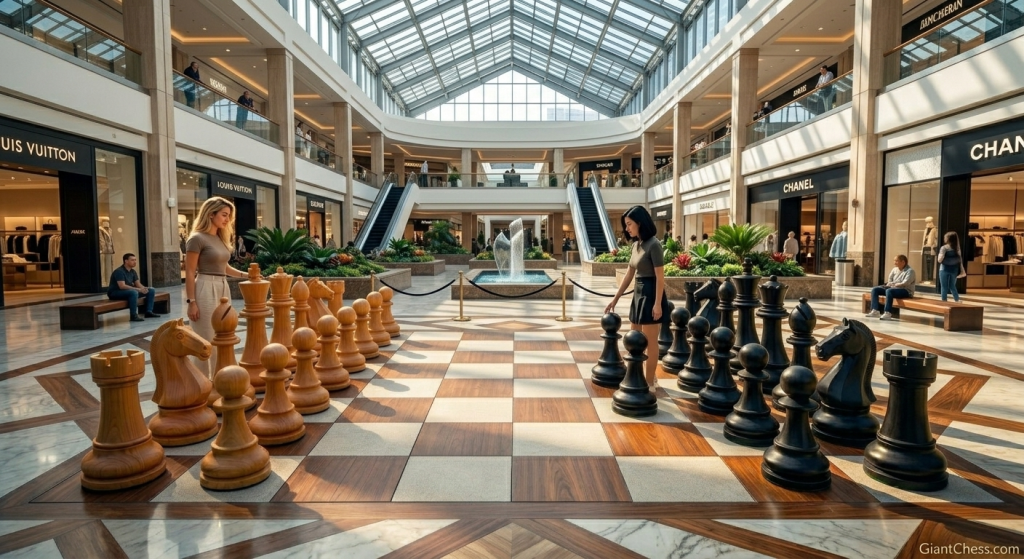 - The Grand Landmark: For larger venues like luxury malls and resorts, our Giant Teak Chess sets serve as an architectural anchor. As seen in the world’s most prestigious plazas, these sets transform a transit area into a destination. They invite engagement, spark conversation, and provide a timeless aesthetic that plastic or stone simply cannot match.