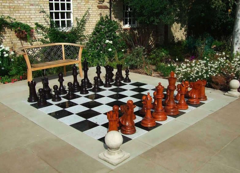 In interior design, we talk about “hero pieces”—items that define the room’s character. In an outdoor setting, a giant chess set serves as that hero piece.