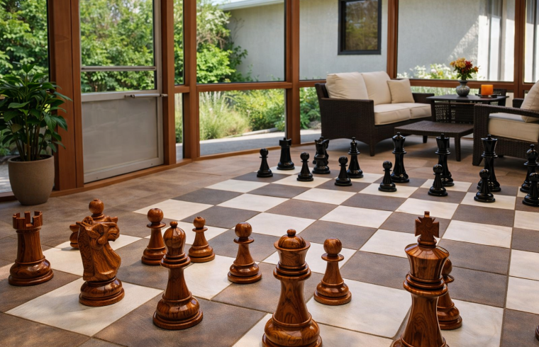 Edmonton homeowners understand the value of versatile outdoor and transitional living spaces. With its legendary durability, teak wood is exceptionally well-suited to Alberta’s climate — resisting moisture, temperature swings, and the occasional harsh weather that characterizes the region. Whether placed in a three-season or four-season sunroom, a screened patio enclosure, or a protected backyard deck, this Giant Chess Set from GiantChess.com stands strong year-round. Its solid construction and balanced weight ensure the pieces are easy to move during friendly games yet stable enough to remain elegant even on breezy Edmonton evenings.