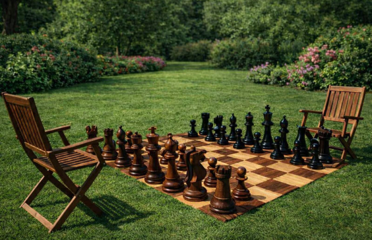 This teak garden chess set from giantchess.com offers far more than just a pastime; it represents a unique fusion of game design, high-end materials, and landscape aesthetics. It’s an opportunity to create memorable experiences, transforming the simple act of playing chess into a captivating event that draws people in and sparks conversation. Whether for serious competition, casual play with family, or simply as a stunning garden sculpture, this giant teak chess set is an investment in creating a beautiful and intellectually engaging space. It is an expression of sophisticated taste and an understanding that the most rewarding spaces are those that engage our minds as well as our senses, providing a perfect place for quiet contemplation and grand, strategic battles.