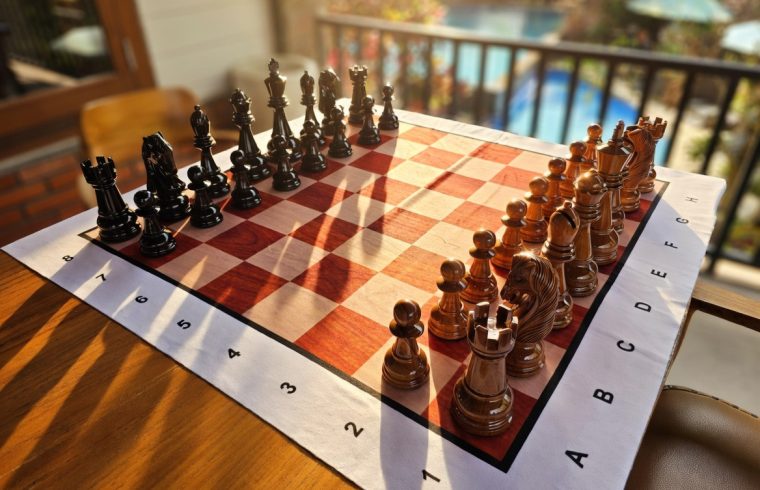 Ultimately, the photograph captures more than a chessboard. It captures a philosophy: that leisure, when paired with craftsmanship, becomes art. The teakwood chess set from GiantChess.com, with its 20 cm king, embodies this idea. It transforms ordinary play into extraordinary experience, reminding us that beauty lies in the details and strategy is best enjoyed in elegance.