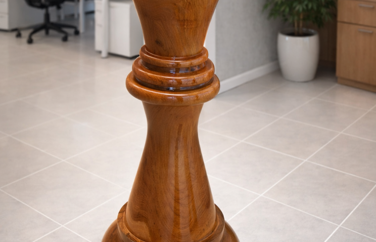 In a world where design meets intellect, few objects can command attention as gracefully as a giant chess king carved from solid teakwood. Standing tall on polished ceramic tiles, this majestic piece transforms an ordinary workspace into a realm of quiet sophistication. It’s not just furniture — it’s a statement of leadership, strategy, and timeless craftsmanship.