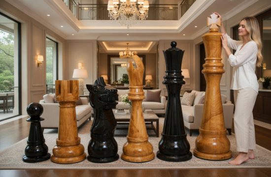In the world of luxury design, true distinction lies in the ability to surprise and captivate. Within this stylish interior, two monumental chess pieces—a towering teakwood king and a commanding black queen—stand as sculptural icons,…