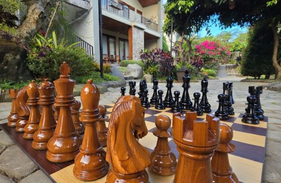 Tucked away in the manicured gardens of a sleek modern hotel, a stunning giant chessboard invites guests to step into a world where strategy meets breathtaking design. This life-sized chess set, crafted entirely from premium…