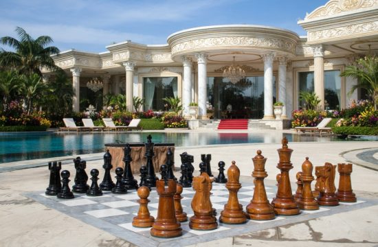 In the heart of a tropical paradise, where the breeze carries the scent of blooming frangipani and the horizon glows with tranquil blue, a magnificent chessboard stands as a centerpiece of leisure and intellect. Beneath…