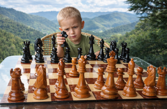There is something profoundly beautiful about the moment a child meets the timeless game of chess. In this serene outdoor setting, a young boy sits before a grand teakwood chessboard, his gaze fixed on the…
